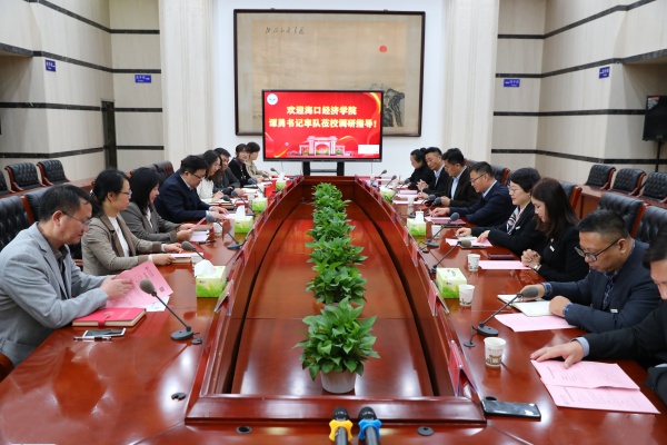 11月13日下午,海口经济学院党委书记谭勇一行来校考察调研。太阳官网党委书记路海华接待来访,组织部、校(党)办、纪委办负责人,经管学院、新法学院、艺设学院、外教学院党总支(副)书记参加调研座谈。
