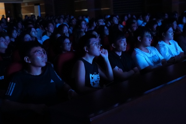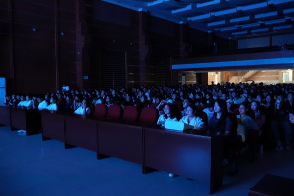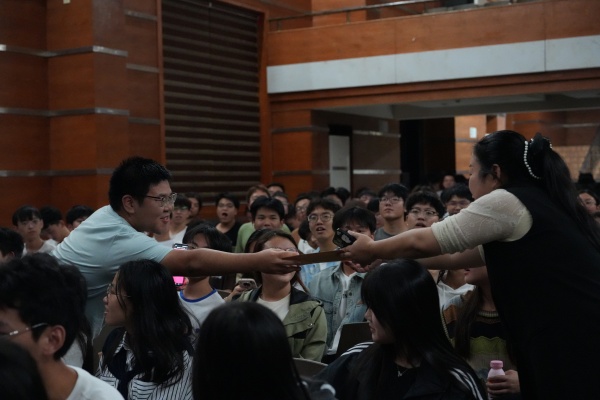 放映前,同学们通过微信小程序参加了“我爱迷彩色”国防知识竞答活动,并现场抽取奖品。