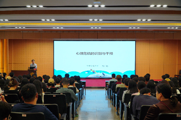 讲座伊始,刘三明就大学生心理问题、常见心理疾病以及心理委员如何开展工作进行了详细阐述。他指出,最重要的一步是心理危机的识别与干预,心理危机的常见症状包括抑郁症、躁狂症、焦虑症、精神分裂症等。随后,他重点介绍了抑郁症,列举了抑郁症的三大核心症状,详细解析了抑郁与不开心的区别,消除了大家对抑郁症的误解。刘三明还重点讲解了如何做好心理危机干预工作,他认为,危机干预流程主要包括危机预防、危机介入、危机善后三个阶段,每一阶段均需要采取相应的措施,而在危机干预中最重要的技能就是“谈心谈话”,其基本原则是知晓倾诉者的需求并给予陪伴,先立再破传递正能量。最后,刘三明还巧妙运用“汉堡”原理解读了谈心谈话的四个阶段,即倾听、陈述、回应、反馈。